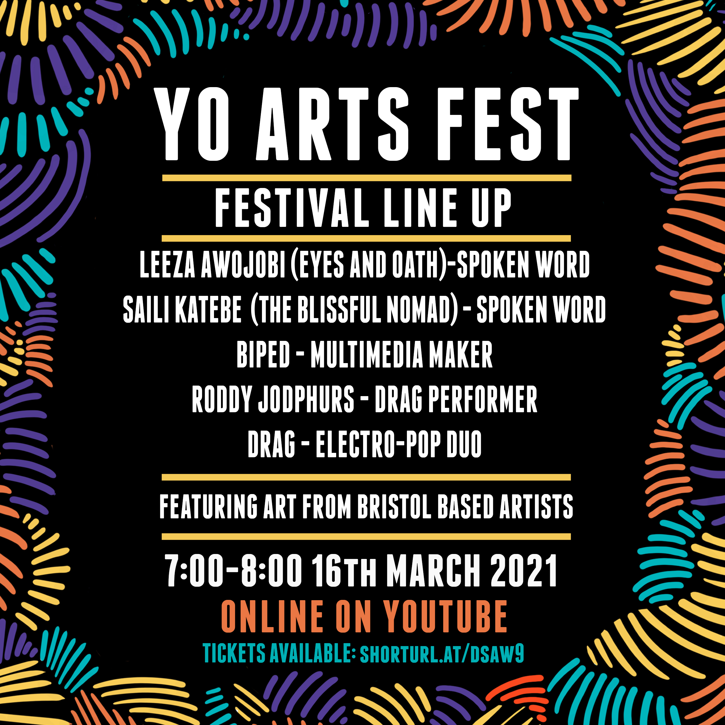 Examples of graphic designs and digital content produced for live online events, social media posts, creative workshops and activities and in person exhibitions. All finished designs feature illustrations produced by myself to compliment the nature of your production.